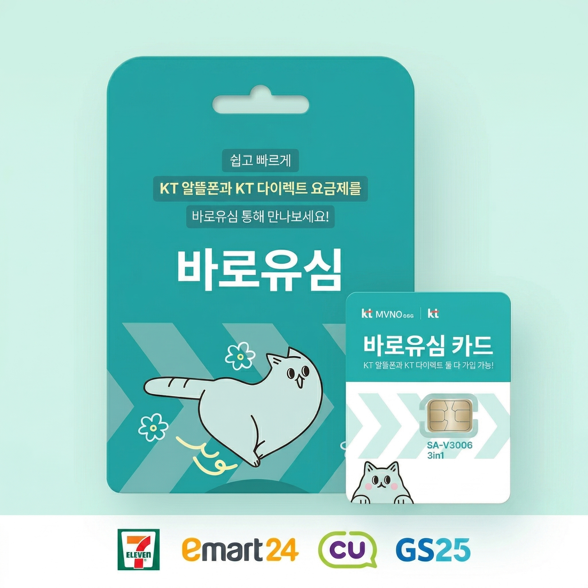 • KT 선불유심 바로유심이며, 8,800원에 구매할 수 있습니다. NFC 기능을 탑재해 교통카드 사용 가능
